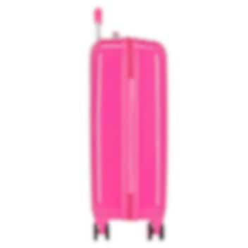 Frost Sparkle Like Magic er en sød og holdbar kuffert til børn, der også fungerer perfekt som kabinetaske. Kufferten har 4 lydløse hjul, der drejer 360 grader, hvilket gør tasken nem at manøvrere fx i lufthavne. Det solide 34-liters bagagerum rummer alt, hvad du skal bruge på turen. Kuffertens pakkerum er foret og opdelt i to rum, et rum der lukkes med lynlås og et rum med elastiske stropper. Alt for at holde din taske organiseret. Frost Sparkle Like Magic er lavet af slidstærkt ABS plastik og har et stabilt teleskophåndtag, bærehåndtag og kodelås. Kufferten kan også bruges som håndbagage da størrelsen (55 x 38 x 20 cm) passer indenfor IATAs regler for håndbagage (tjek dog hvad der gælder for dit flyselskab).