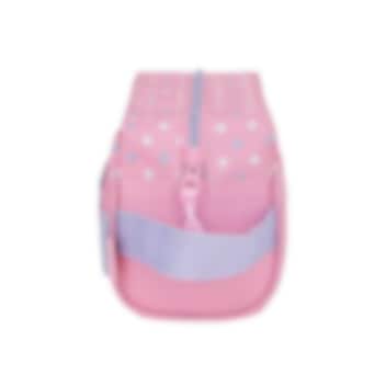Hello Kitty Hearts & Dots er en legende og praktisk toilettaske til børn, som gør det nemt at holde styr på de vigtigste småting. Det rummelige hovedrum har god plads til tandbørste, hårbørste, sæbe og andre toiletartikler, hvilket gør tasken ideel både til hverdagsbrug derhjemme og til overnatninger eller rejser. Toilettasken er fremstillet i slidstærkt og vandafvisende materiale, som beskytter indholdet mod fugt og små spild og samtidig gør den nem at tørre af med en fugtig klud. Lynlåsen sørger for, at alt opbevares sikkert, og det smarte design gør, at tasken også kan bruges som penalhus eller til opbevaring af små legetøj og yndlingsting.