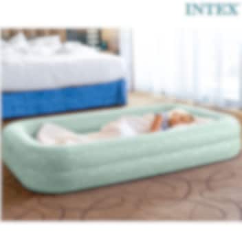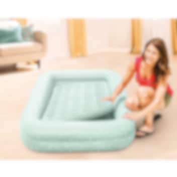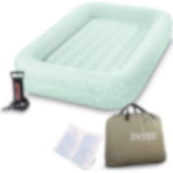 Tag tryg søvn med på farten med Intex Kidz Travel Bed Set, en oppustelig rejseseng til børn med aftagelig indermadras. Sengen er blød og komfortabel, og de høje kanter forhindrer barnet i at rulle ud om natten, så både børn og forældre kan sove trygt. Den aftagelige indermadras gør det let at fastgøre lagen, så de bliver på plads og ikke glider rundt under søvn. Sættet inkluderer en effektiv håndpumpe til hurtig oppustning og en praktisk transport- og opbevaringspose, så sengen nemt kan tages med på ferie, weekendture, overnatning hos venner eller familie og sommerhuset. Intex Kidz Travel Bed Set er ideel til børn fra ca. 3 til 6 år og kombinerer komfort, praktisk funktionalitet og sikkerhed på farten.