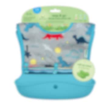 Green Sprouts Snap & Go Dinosaurs 3-i-1 er et smart og praktisk sæt med tre udskiftelige hagesmække og en opsamlingslomme i silikone. Efter fodring rulles hagesmækken nemt sammen og sikres, så indholdet ikke vælter ud. Det betyder, at du kan vente med at vaske hagesmækken, indtil du er hjemme. Hagesmækkene har en rummelig opsamlingslomme i fødevaregodkendt silikone, og toppen, som er aftagelig, er lavet af vandtæt polyester. Toppen kan maskinvaskes, mens opsamlingslommen vaskes separat. Snap & Go-modellen har buede sider, der følger barnets bevægelser, hvilket gør hagesmækkene komfortable og nemme at bruge. Kort sagt: en smart og praktisk hagesmæk, der er lige så god på tur som hjemme. Tag hagesmækkene med i håndbagagen, pusletasken eller pungen.