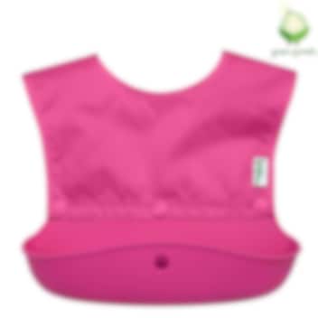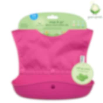 Green Sprouts Snap & Go Pink er en smart og praktisk hagesmæk. Efter fodring rulles hagesmækken nemt sammen og spændes fast, så indholdet ikke vælter ud. Det betyder, at hagesmækken ikke behøver at blive vasket med det samme, men kan tages med hjem og rengøres senere. Hagesmækken har en opsamlingslomme i fødevaregodkendt silikone, og overdelen, som er aftagelig, er lavet af vandtæt materiale. Overdelen kan maskinvaskes, mens opsamlingslommen vaskes separat. Snap & Go-modellen har buede sider, der følger barnets bevægelser, hvilket gør hagesmækken komfortabel og praktisk at bruge. Kort sagt: en hagesmæk, der er lige så god på tur som hjemme, og som nemt kan tages med i håndbagagen, pusletasken eller pungen.