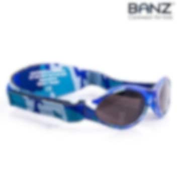 De stilfulde Kidz Banz Blue Camo solbriller til børn er designet til børn mellem 2-5 år og kombinerer komfort, holdbarhed og optimal UV-beskyttelse. Brillerne er udviklet af det australske firma Banz og er specielt fremstillet til at passe børns hoved, ansigt og øjne, så dit barn kan nyde solen sikkert – på stranden, i sneen eller hjemme, når solens stråler er stærke. Stelene er fleksible og holdbare, og de stødsikre linser har certificeret (klasse 400) 100% UV-beskyttelse mod både UV-A og UV-B. Solbrillerne har en praktisk nakkestrop af blød neopren, som holder brillerne sikkert på plads under leg og aktivitet.