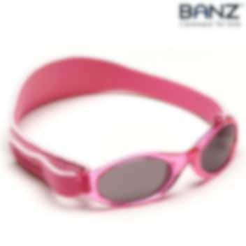 De stilfulde Kidz Banz Pink solbriller til børn er designet til børn mellem 2-5 år og kombinerer komfort, holdbarhed og optimal UV-beskyttelse. Brillerne er udviklet af det australske firma Banz og er specielt fremstillet til at passe børns hoved, ansigt og øjne, så dit barn kan nyde solen sikkert – på stranden, i sneen eller hjemme, når solens stråler er stærke. Stelene er fleksible og holdbare, og de stødsikre linser har certificeret (klasse 400) 100% UV-beskyttelse mod både UV-A og UV-B. Solbrillerne har en praktisk nakkestrop af blød neopren, som holder brillerne sikkert på plads under leg og aktivitet.