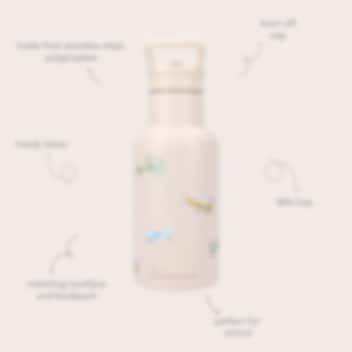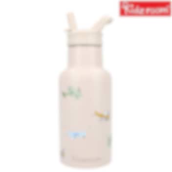 Kidzroom Aircrafts er en sød, praktisk og holdbar drikkeflaske til børn. Flasken er fremstillet af fødevaregodkendt rustfrit stål og rummer 350 ml. En drikkeflaske af metal holder drikken kølig og velsmagende i længere tid og er samtidig meget holdbar og nem at vedligeholde. Flasken har en drikkevenlig tud, der foldes ned efter brug og beskytter mod snavs, samt et praktisk bærehåndtag, så den er nem at tage med. Indbygget sugerør går helt ned til bunden, så barnet kan drikke med flasken oprejst og undgå spild. Drikkeflasken kombinerer funktionalitet, holdbarhed og et børnevenligt design, hvilket gør den til et sikkert og praktisk valg til hverdag og fritid. Den er perfekt til skole, udflugter, træning eller bilture.