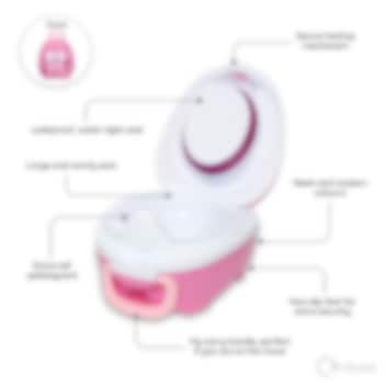 My Carry Potty Pink Dragon rejsepotte er en smart, praktisk og bærbar potte til både rejser og hjemmebrug. Efter brug kan potten lukkes med et tætsluttende låg og tømmes samt rengøres senere. Rejsepotten er både lækage- og lugtfri og giver en hygiejnisk løsning, når barnet skal på toilettet uden for hjemmet. My Carry Potty er nem at tage med på ferie, i bilen, i byen eller til steder, hvor man gerne vil undgå offentlige toiletter. Den er også ideel til toilettræning, da mange småbørn foretrækker deres egen potte frem for en fremmed, hvilket giver større tryghed og ro.