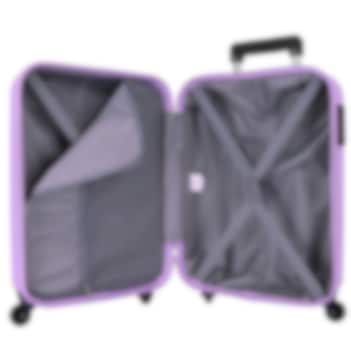 Roll Road Flex Malva er en stilfuld og funktionel børnekuffert, der er lavet af slidstærk ABS-plastik. Kufferten har fire stillerullende hjul, teleskophåndtag og masser af plads til barnets rejsebagage og legetøj. I kuffertens ene side er der en sektion der kan lukkes med lynlås og i kuffertens anden side er der pakkestropper til at placere og holde genstande. ABS-barnekufferten har et hårdt låg og et bekvemt stort løfte- og bærehåndtag samt en TSA-lås til at låse kufferten. Kufferten er egnet til børn fra omkring 4 år.