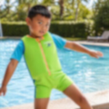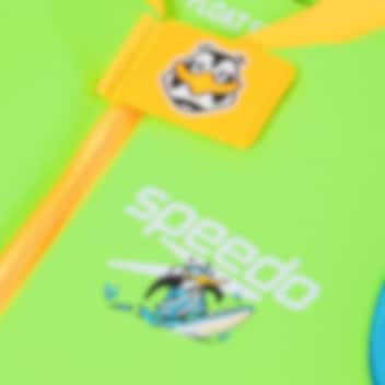 Speedo Float Suit Fluro Green er en badedragt til børn med længere ærmer og ben samt integrerede skumpuder, som holder barnet flydende og sikrer en korrekt svømmeposition i vandet, mens barnet lærer at svømme. Formålet med denne træningsdragt, der er specielt designet til småbørn, er at vænne barnet til vandet og samtidig lære de første svømmeteknikker. Barnet kan bevæge arme og ben frit, mens det flyder sikkert på vandoverfladen. Badedragten lukkes med lynlås foran og er fremstillet af et blødt materiale, som er behageligt at have på. Den er perfekt at tage med på ferie eller til brug ved svømmeundervisning i hjemmepoolen. Dragten opfylder både australske og europæiske sikkerhedsstandarder.
