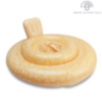 Swim Essentials Baby Float Yellow Flowers er en stabil og funktionel babybadering, perfekt til at give de mindste en tryg og sjov introduktion til vand. Med en diameter på 69 cm passer den til børn op til 11 kg (0-1 år). For ekstra sikkerhed er baderingen udstyret med fire separate luftkamre og sikkerhedsventiler, som forhindrer luftlækage, og den er sikkerhedstestet i henhold til EU-standarder. De to huller i baderingens bund giver barnet fri bevægelse af benene, samtidig med at det sidder komfortabelt og stabilt. Swim Essentials Baby Float Yellow Flowers er ideel til babys første vandoplevelser – både i poolen, på badeferie eller derhjemme – og kombinerer tryghed, komfort og leg i ét produkt.