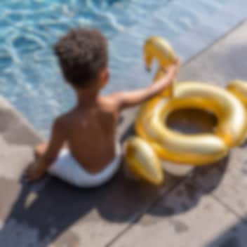 Swim Essentials Split Ring Golden Swan er en flot og oppustelig badering til børn, perfekt til leg og svømning i både poolen og havet. Baderingen har en diameter på 55 cm og er lavet af slidstærkt og giftfri PVC, hvilket sikrer langvarig brug. Baderingen er udstyret med sikkerhedsventil og sikkerhedstestet, så børnene kan lege trygt i vandet. Den farverige design gør baderingen ekstra attraktiv for børnene og skaber masser af sjove sommeroplevelser i vandet. Baderingen er egnet til børn fra 3 år+ og kan bære en maksimal vægt på 50 kg.