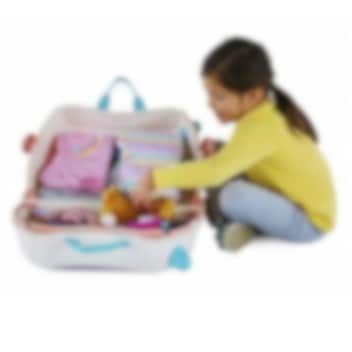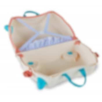 Trunki Lama Lola er en praktisk og prisvindende kuffert til børn. Kufferten har hjul og trækrem og kan også bruges til at køre på! I en Trunki børnekuffert er der god plads til alle børns ting, mens tasken fungerer som transportmiddel, når børnenes ben er blevet trætte, for eksempel i lufthavne