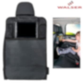 Walser Premium Kenny er en praktisk og beskyttende sædeorganizer til bil med integreret tablet-holder, der passer til tablets med en skærmstørrelse på op til 10 tommer. Organizerens smarte design gør det nemt at holde orden på bagsædet, samtidig med at forsædets ryg beskyttes effektivt. Sædeorganizeren er fremstillet af vandafvisende og slidstærkt 600D polyester, som beskytter bagsiden af forsædet mod snavs, ridser og dagligt slid. Den har to netlommer, der er ideelle til opbevaring af drikkedunk, snacks eller andre småting til køreturen. Tablet-holderen giver nem adgang til tabletten, da både skærm og betjeningsknapper kan nås fra toppen og fra siderne. Monteringen er enkel og sikker – sædeorganizeren fastgøres omkring nakkestøttens stænger med justerbare stropper med spænde og forneden omkring forsædet med elastik og spænde.