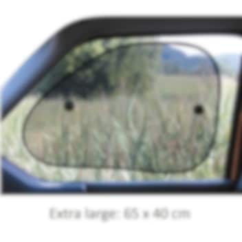 Walser Maxi Extra Large er en praktisk solskærm til bil, som fastgøres med sugekopper til bilens sideruder. Skærmene beskytter barnet mod skarpt sollys på korte og lange rejser og er lette at montere og fjerne (pop up teknik). Solskærmene er gennemsigtige men beskytter samtidig mod sollys. Sættet indeholder to skærme.